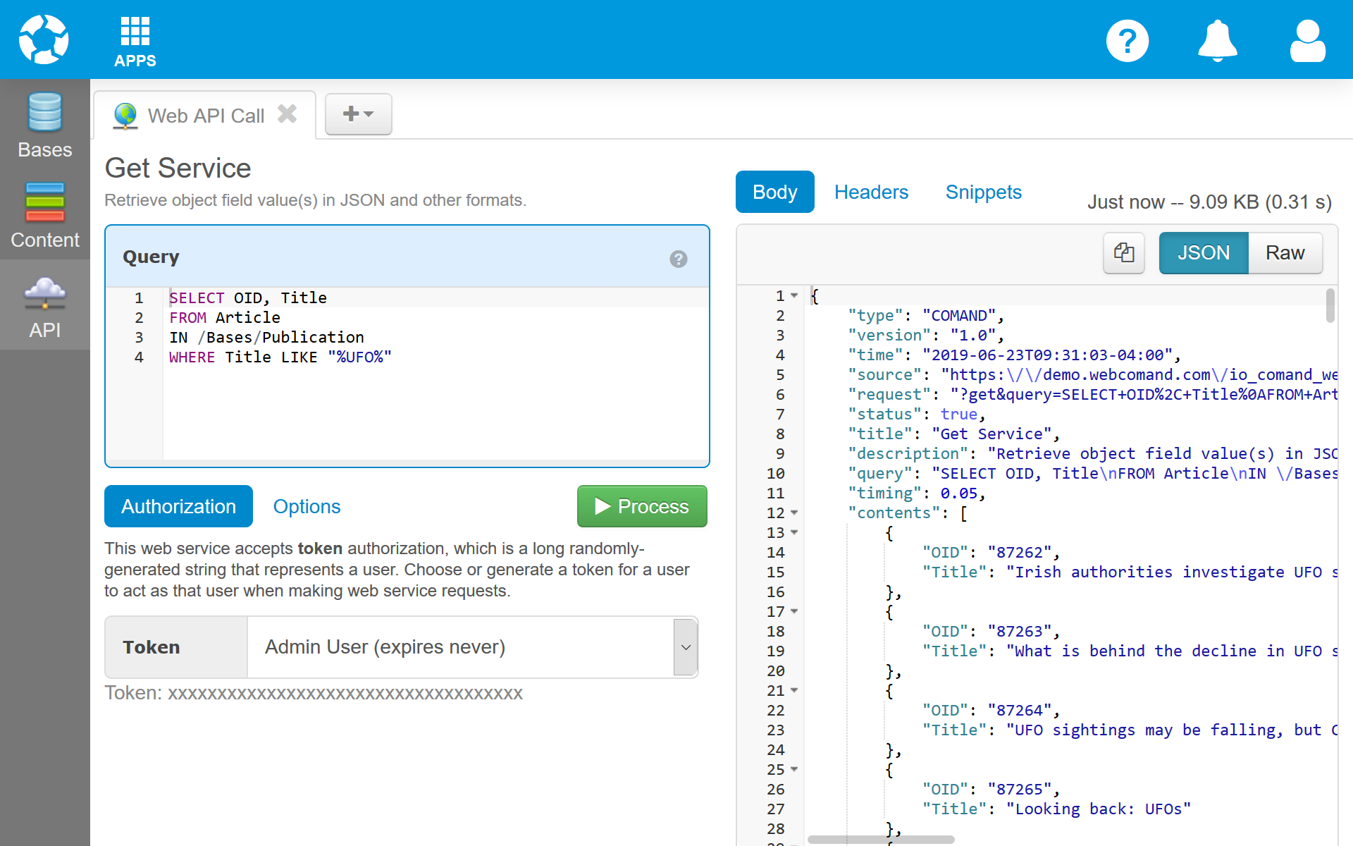 While the other services mostly support GraphQL, only webCOMAND provides a query language with capabilities similar to SQL, including capabilities critical to some projects and tasks: