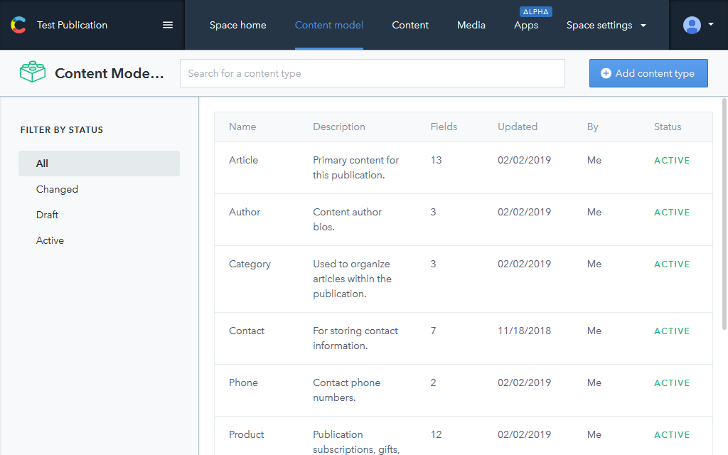 Contentful has the most straight-forward content modeling interface. Add a content type, add fields, reorder and edit fields as needed. They have done an excellent job of making this process as simple as possible while providing the options needed in real-world models.