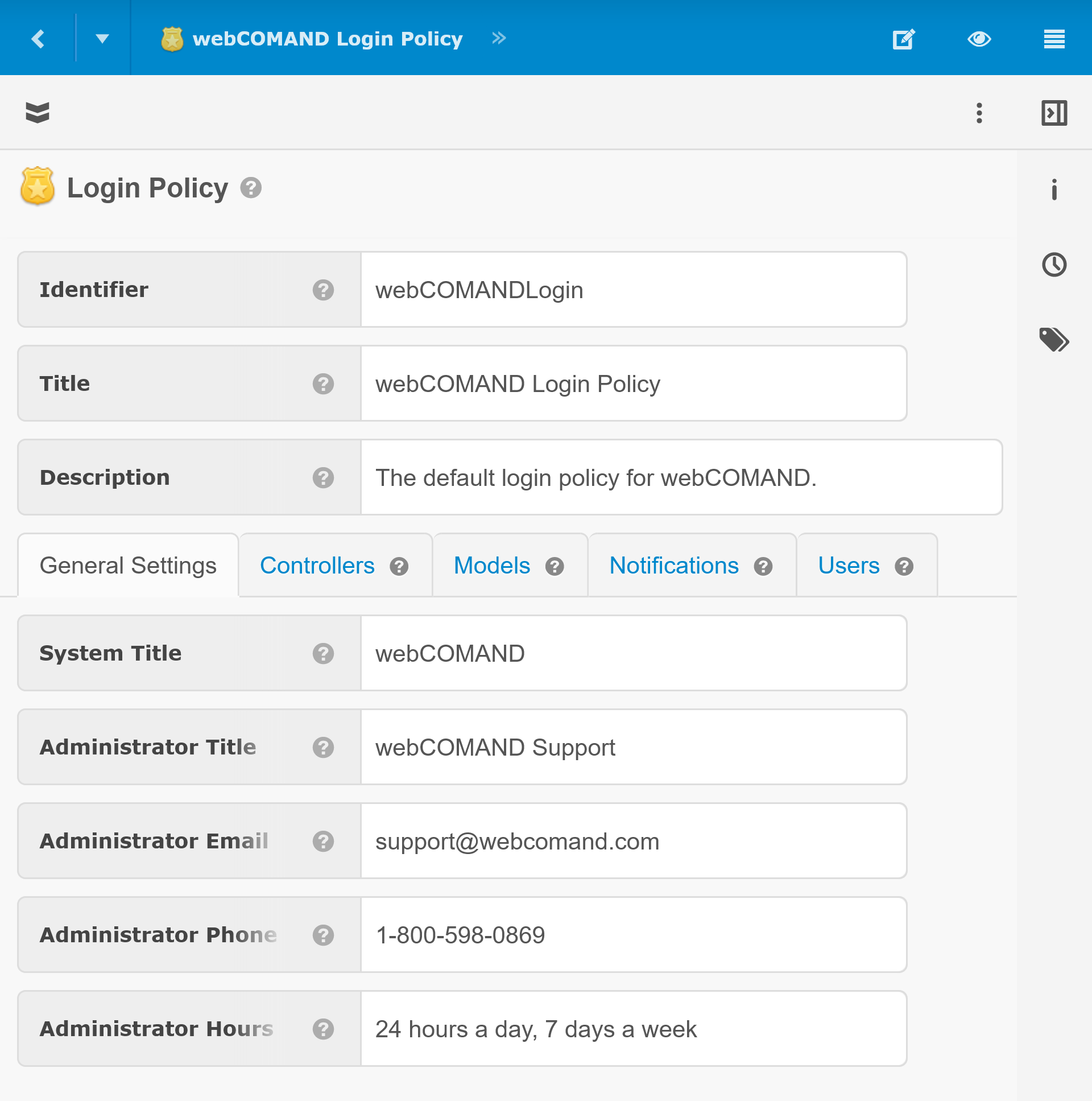 - Identifier - Name used to identify the Login Policy from code, including the login::Constructor.