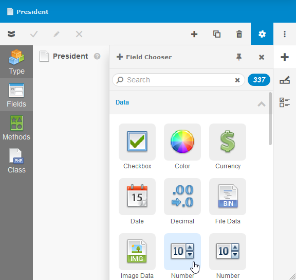 - Drag-and-drop the "Number" from the Field Chooser to the form.