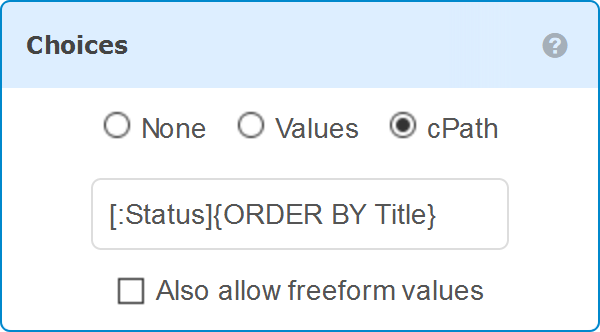 When cPath is selected in step 3 above, a cPath can be entered, which will be evaluated to produce the list of menu options to chose from. The cObject Summary will be used for the menu option title and the cObject Key will used for the corresponding field value.