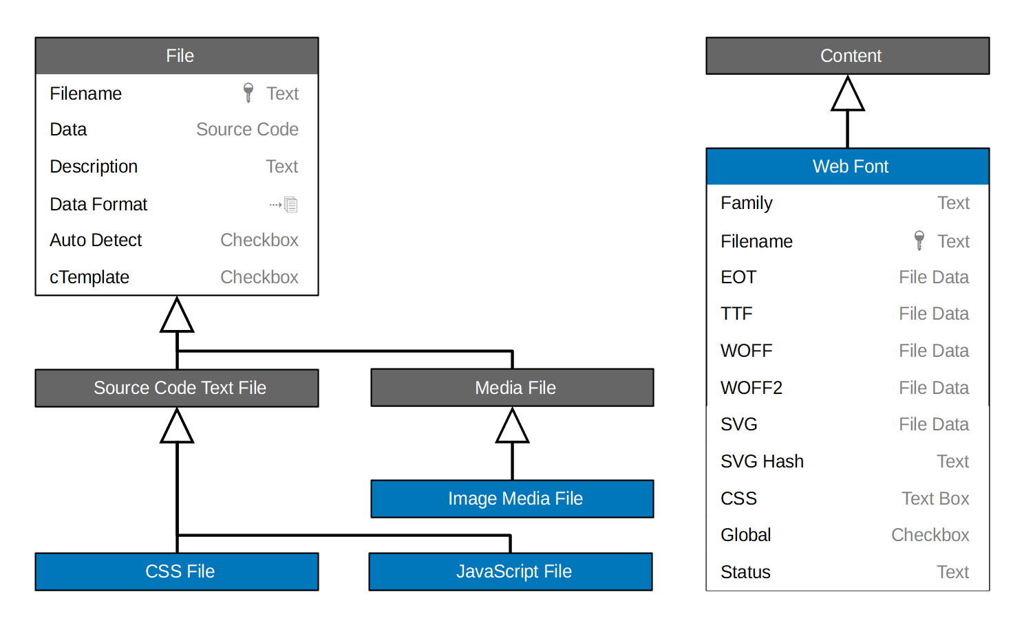 - Web Font - Defines a collection of web font files that will be published together and are easily incorporated into a CSS File.