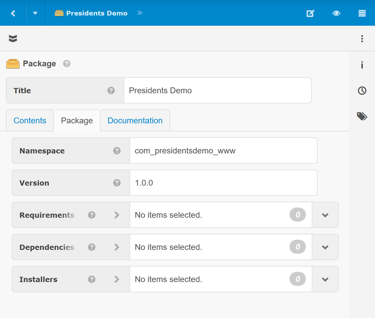 - Version - A version number (ie. 1.0.0) to track when official updates are made to the package.