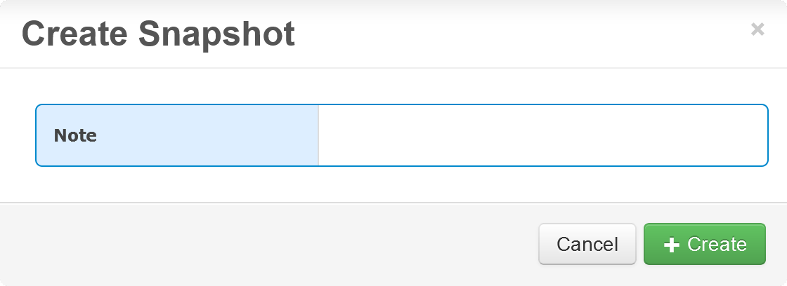 To add a new Snapshot, click "+" and enter a Note to describe the Snapshot for future reference.
