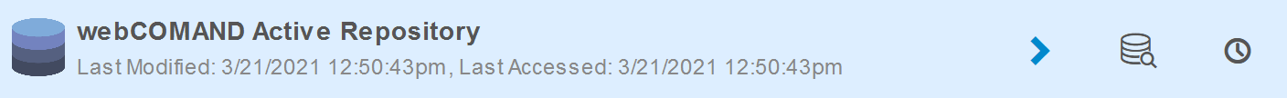 Repos will display once launched, which lists webCOMAND Repositories in the account. Typically, there is only one. Hover over a repository to reveal the following options to the right.