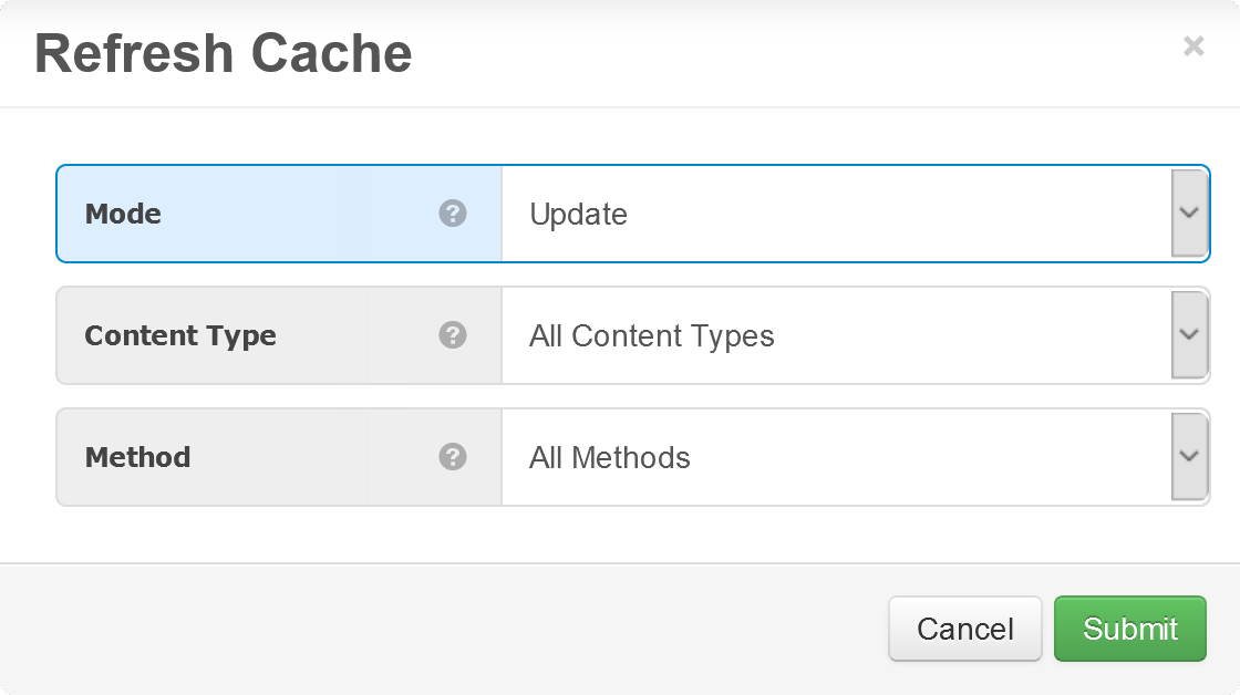 - Clear - Clear and re-populate the cached values for the selected Content Type and Method.
