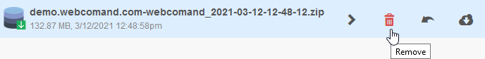 To delete an existing backup, hover over the backup and click the remove option to the right.
