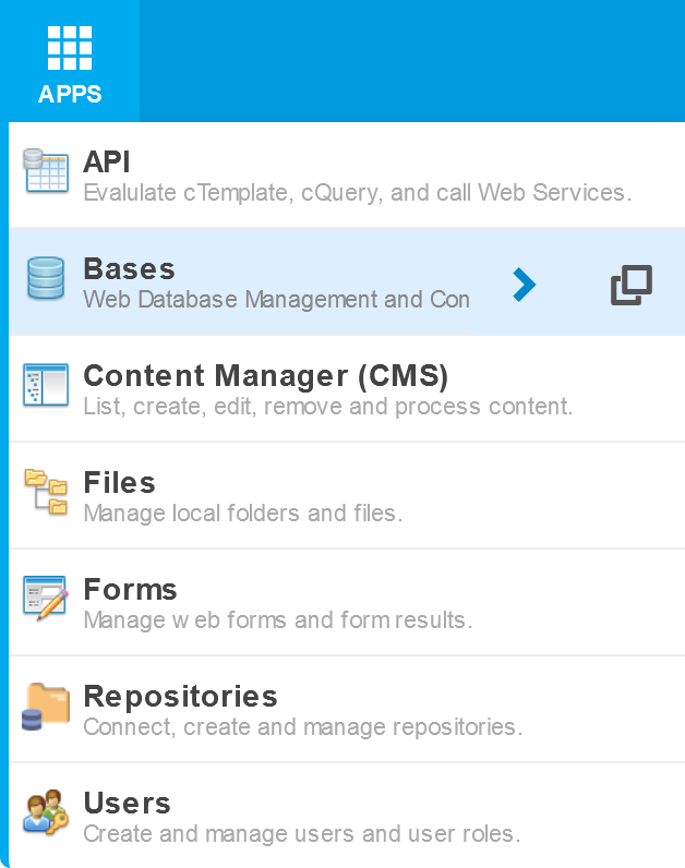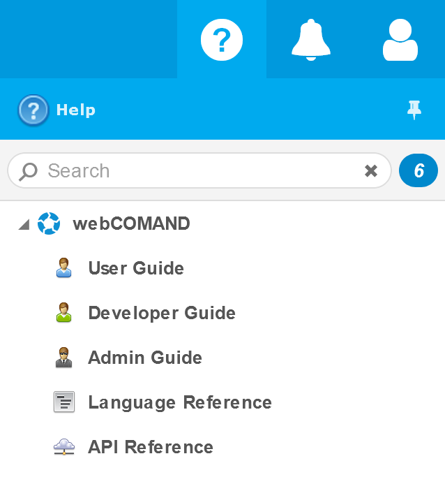 - Help - Quick access to documentation about webCOMAND and various apps, as well as custom documentation specific to the account.