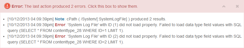 The Alert Bar displays issues and notes, typically based on the last operation performed. It only appears when there is new information to display, and remains opened until it is closed.