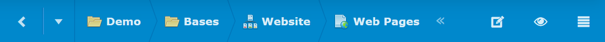- Title - The center area can display the title, summary or path of the content or collection displayed in the panel's view below. Click the title to refresh the view. Click and drag to move, copy or link the panel content or collection to the quick link bar or a container such as a folder displayed in the tree view. Use the double-arrow to expand/collapse the full path.