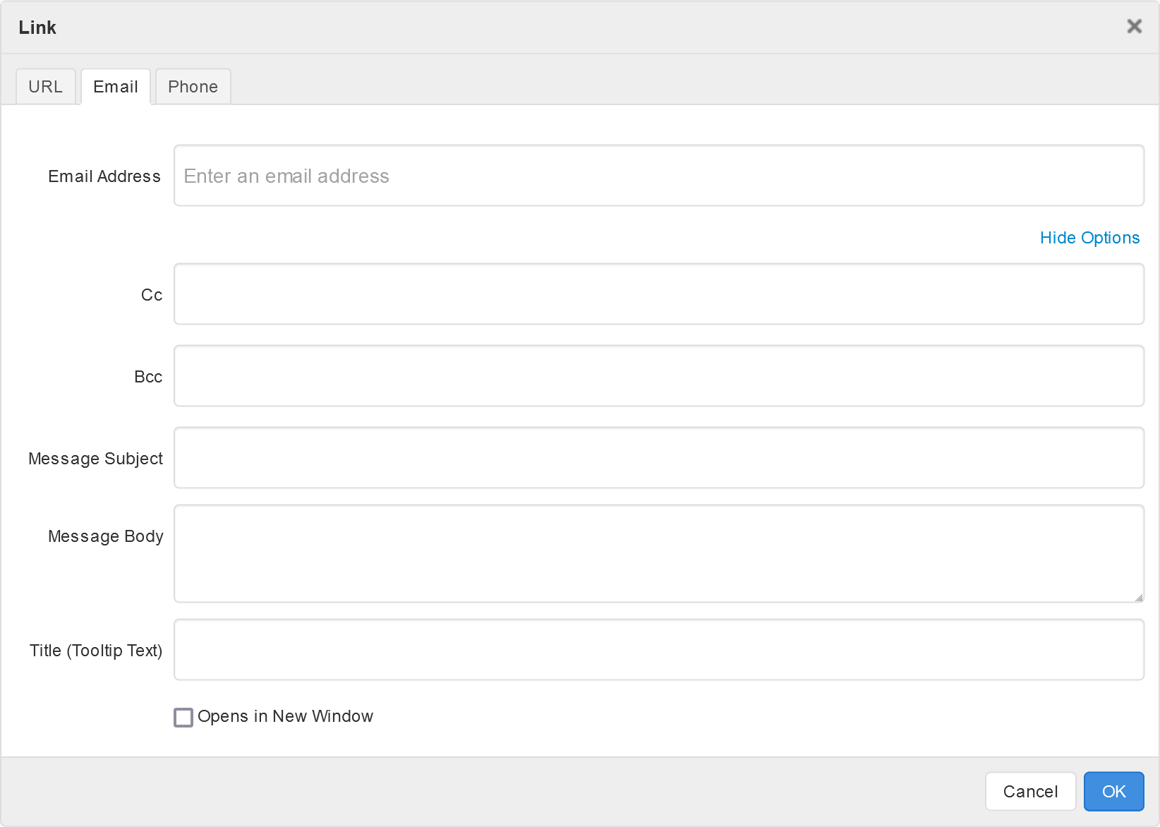 - Email Links - Open a new email composition with a preset To, Cc, Bcc, Subject and/or Body.