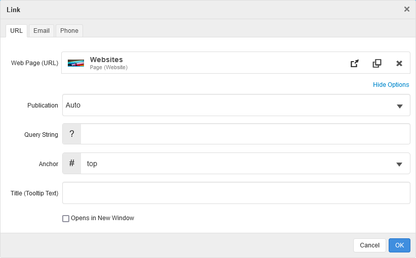 It is now faster and easier to add links to web pages, anchors, emails and phone numbers.